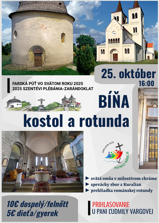 (19.10.-26.10.2025) V nedeľu 19. októbra 2025 je 29. cezročná nedeľa. Svätá omša v Nýrovciach je o 8:30, v Želiezovciach je sv. omša po slovensky o 9:30, potom po maďarsky o 11:00. V pondelok nie je v kostole sv. omša. V utorok je liturgická féria, svätá omša je po slovensky o 18:00. V stredu je spomienka sv. Jána Pavla II., pápeža, svätá omša je po maďarsky o 18:00. Vo štvrtok je liturgická féria, modlitba sv. ruženca je v kostole o 17:30,...