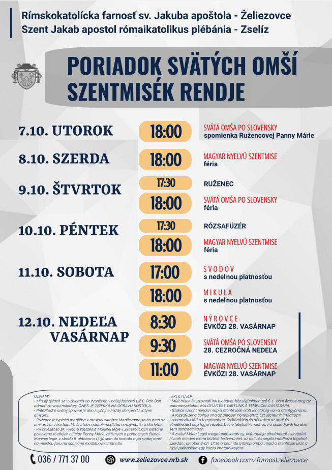 svätá omša je po maďarsky o 18:00.