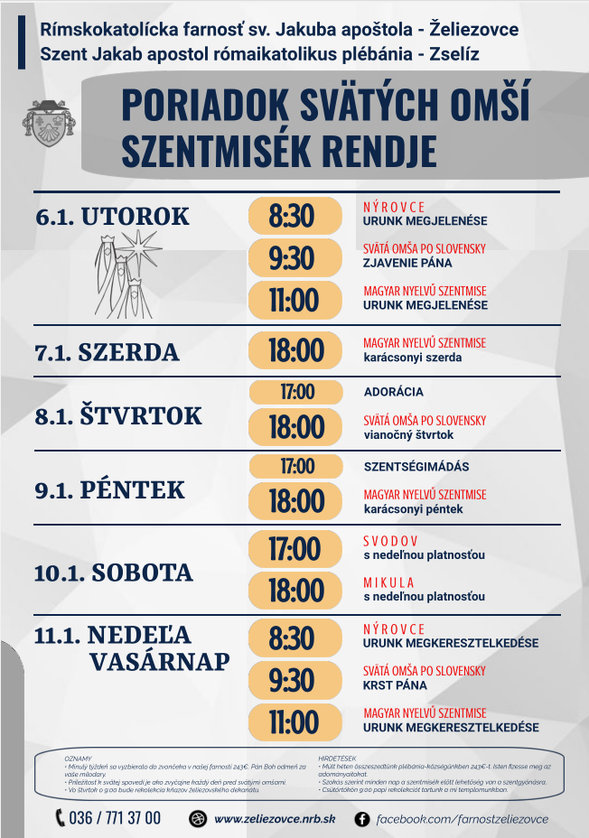 • Vo štvrtok o 9:00 bude rekolekcia kňazov želiezovského dekanátu.